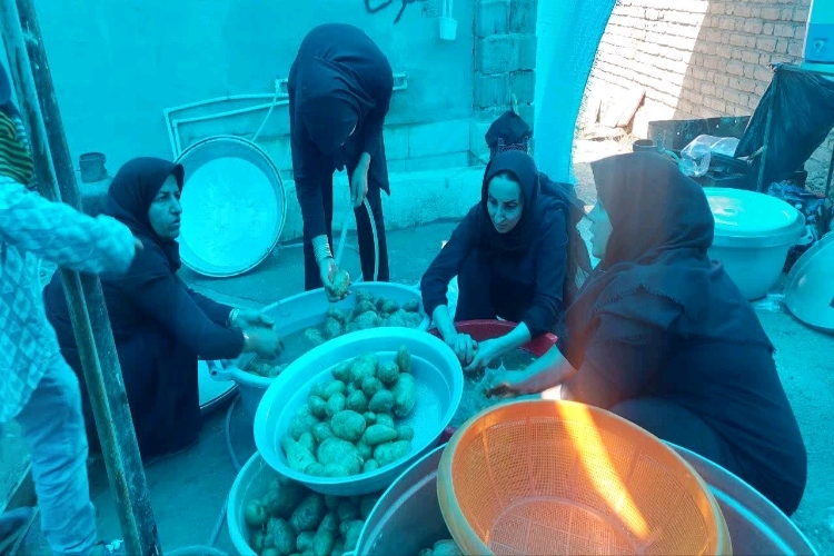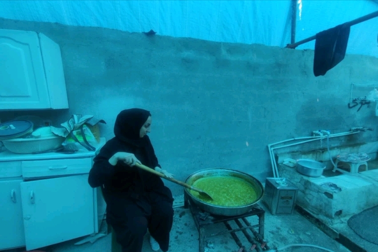 در قسمت دیگری از موکب اصلیترین بخش موکب در میان آشپزخانه موکب، زنان و مردان و کودکانی مشغول به کارند که هر کدام سرشان به کار است.