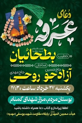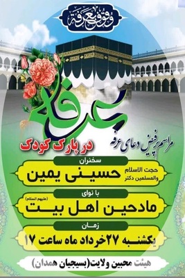 پوستر اطلاعرسانی برخی از مراسم قرائت دعای عرفه در بقاع متبرکه، مساجد، پارکها و هیئتهای همدان برای بهرهمندی از این آین معنوی و پرفیض تقدیم مخاطبان ایکنا میشود.