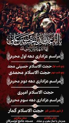 پوستر | اعلام مراسمات دهه اول محرم در تویسرکان