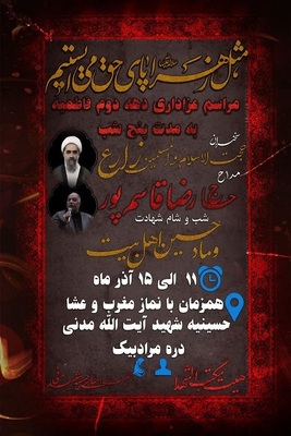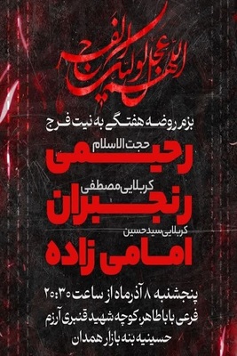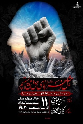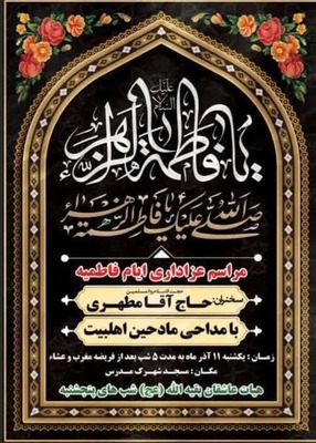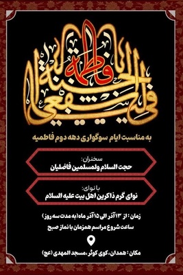 مساجد، حسینیهها و هیئتهای مذهبی همدان بهمناسبت ایام شهادت حضرت فاطمه زهرا(س) اقدام به برگزاری مراسم عزاداری کردهاند که پوستر تعدادی از این مراسم تقدیم مخاطبان ایکنا میشود.